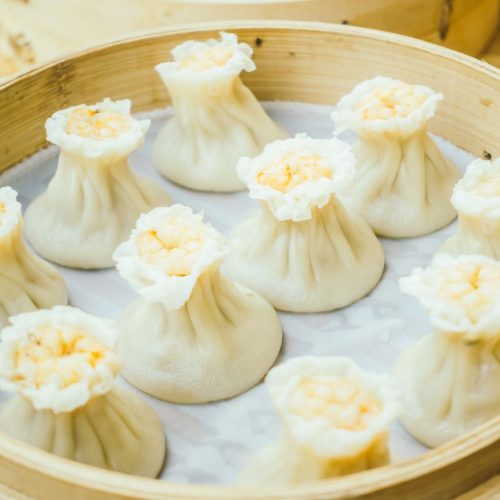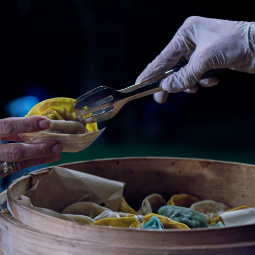 כיסוני בצק צבעוניים באידוי פרונטלי במקום במגוון מילויים. מוגש חם.