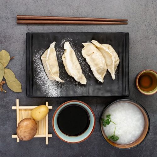 גיוזה עוף חמוץ מתוק | גיוזה בטטה ופטריות | גיוזה תרד ובוטנים | גיוזה עוף ספייסי | גיוזה בקר