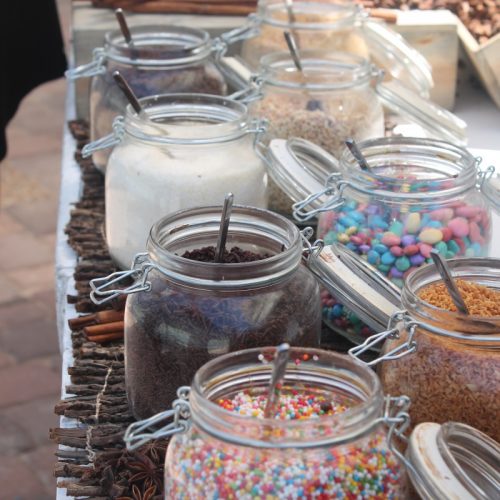 גלידת וניל בסירופ פירות יער – בליווי קצפת מפנקת, סירופ שוקולד וסוכריות צבעוניות