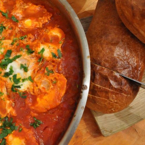 שקשוקה ישראלית קלאסית, עם רוטב עגבניות,
